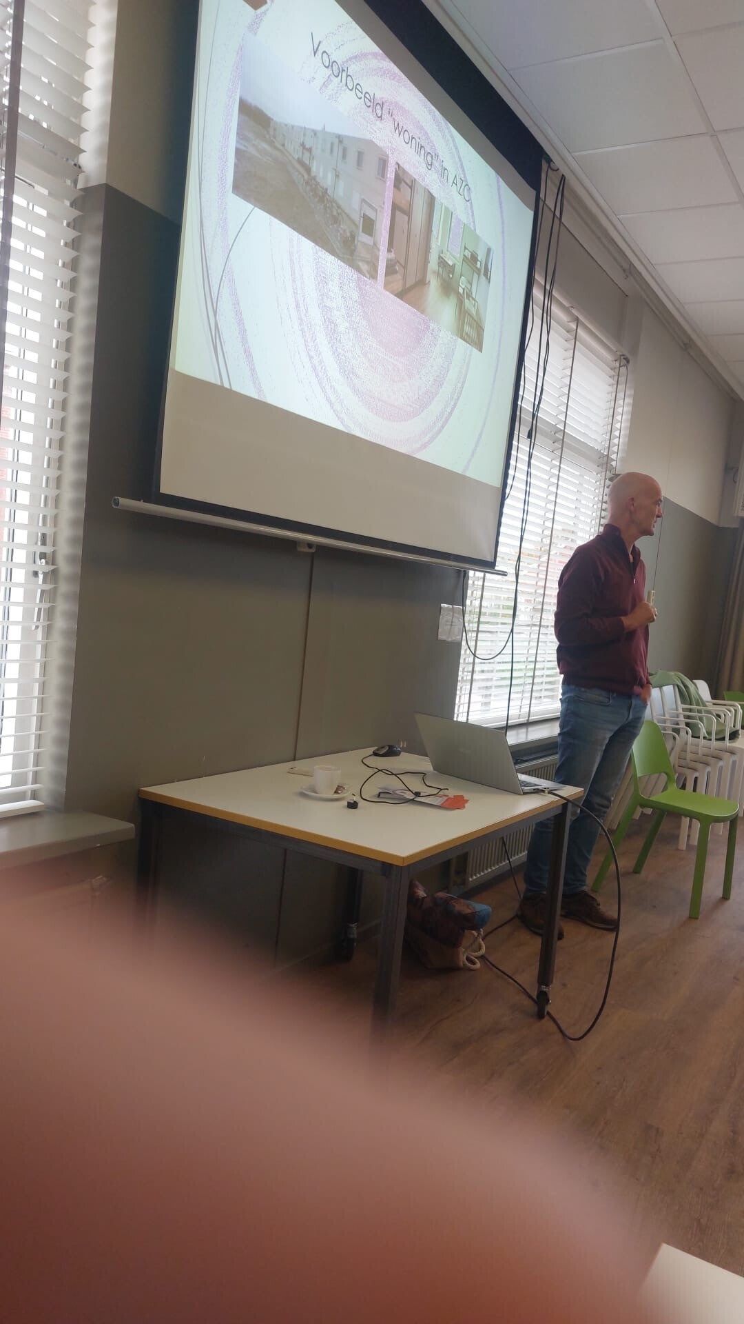 Veel oudere mensen hebben een angst om te vallen. Vanuit ""het huis van de sport"" wordt er actief gewerkt aan programma's om mensen te leren "goed" te vallen en steviger op de benen te staan. Nick Snippe geeft ons voorlichting hierover. Niet alleen voorlichting, nee we moeten ook nog in de benen en doen wat kleine oefeningen. Hanneke bedankt Nick voor deze informatieve ochtend.